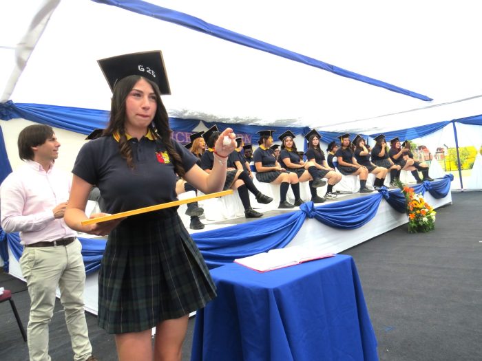 Durante la ceremonia de graduación, Kimberly Apablaza, profesora jefe de IV°A, compartió inspiradoras palabras para los ahora ex estudiantes, así como también nuestra directora del Colegio Santa Bárbara doña Julieta Contreras Lastra quien nos conmovió con un emotivo discurso para los jóvenes quienes ahora pasan a una nueva y desafiante etapa en sus vidas.