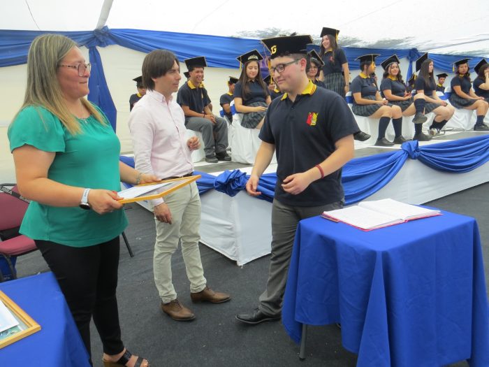 Una distinción especial fue otorgada a aquellos estudiantes que han sido parte de la comunidad desde kínder recibiendo el Premio a la trayectoria. Además, se destacó a quien alcanzó el mejor promedio de enseñanza media, siendo merecedora de este reconocimiento Isidora Antilaf con un promedio de 6,86. Asimismo, el premio al mejor promedio del IV° A fue compartido por los estudiantes: Isidora Antilaf, Thalia Crispín, Elías Mejía, Alondra Mora y Juan Diego Torres. Por otra parte, el premio al mejor compañero, por elección de los mismos estudiantes fue otorgado a Jesús Sacramento Do Espiritu Santo.
